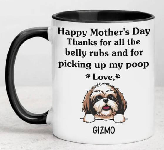 Brighten your mornings with a touch of humor and love with our Customize Dog Humor Mug. Featuring a playful "Thanks for picking up my poop and stuff" quote, this mug can be personalized with your pet's name and photo. Additionally, you can add a custom title and quote to make it uniquely yours. Available with red, white, or black handle options, this mug is the perfect gift for dog lovers who appreciate a good laugh and a warm beverage.