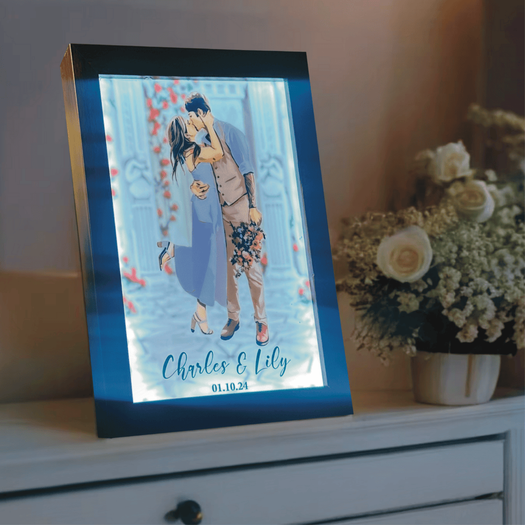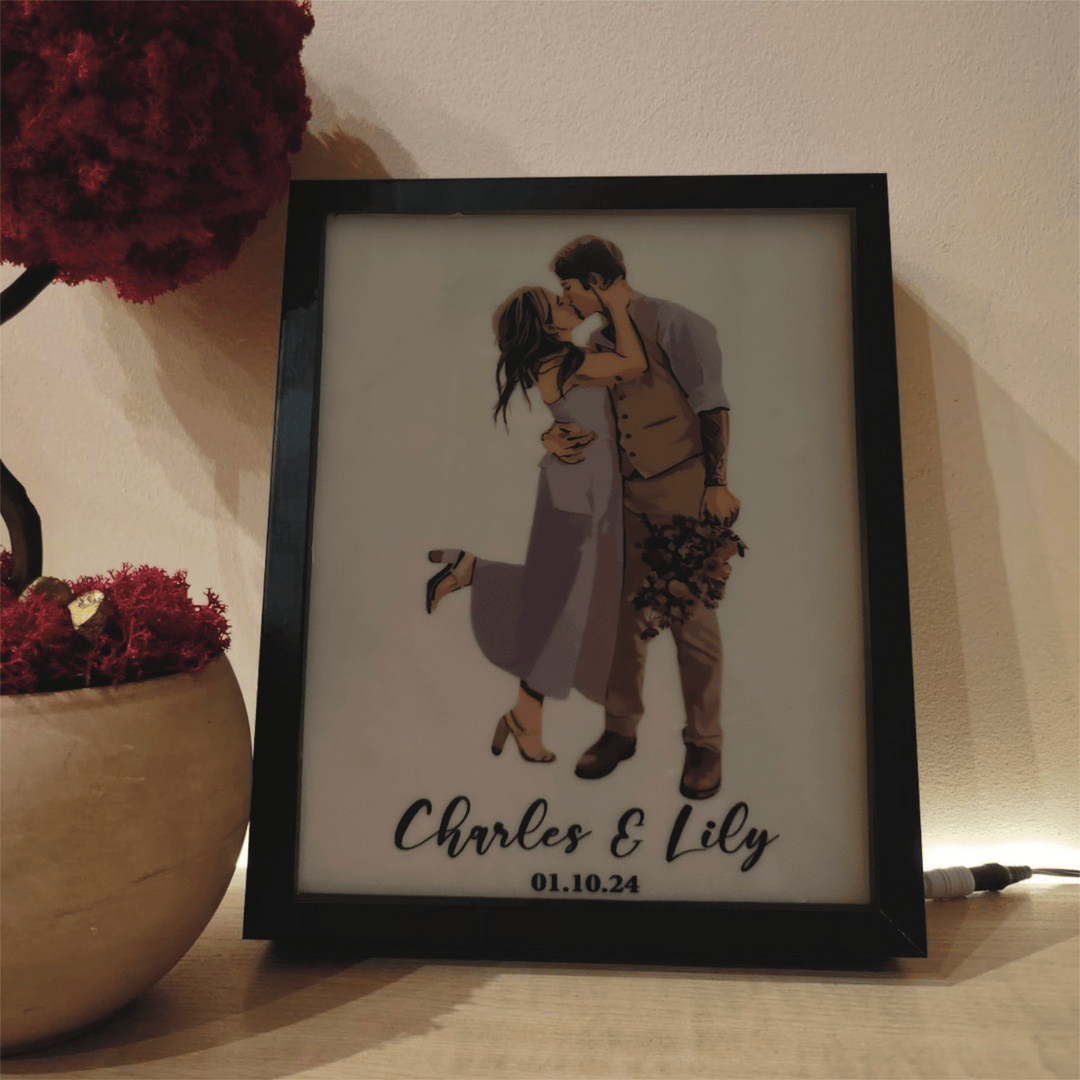 You simply plug the Keepsake PhotoFrame with the USB that comes with it, and turn on the light switch, then your Frame will be lit up with magic!