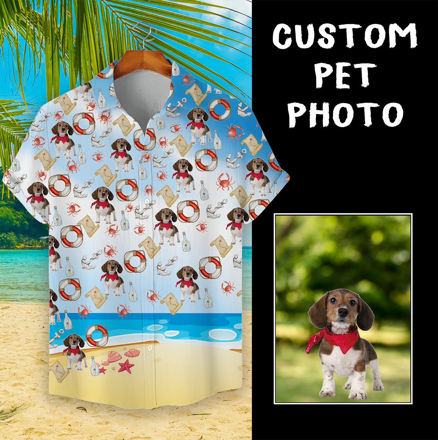 Custom Hawaiian Shirt for Pet Lovers | Personalized Pet Lovers Gift | Beach Pattern Light Color Aloha Shirt