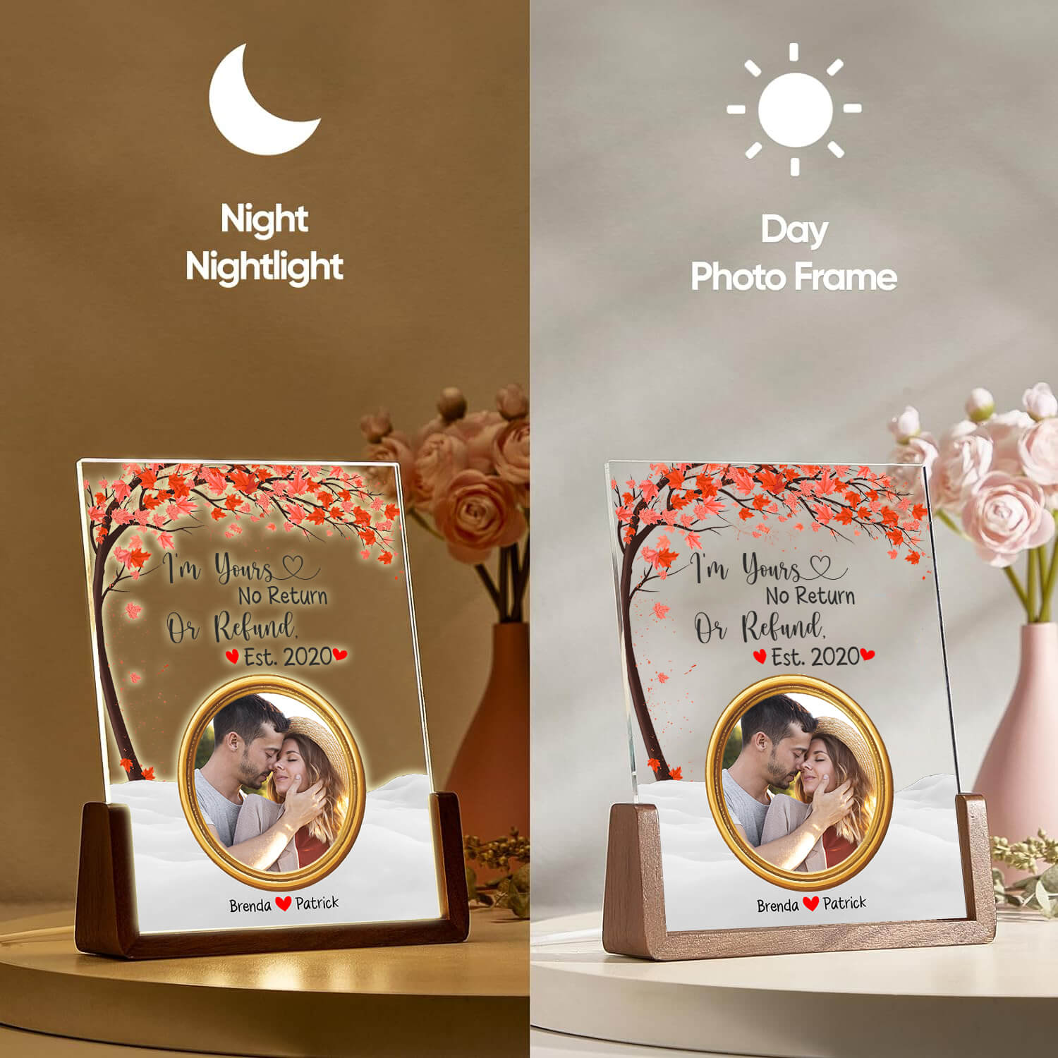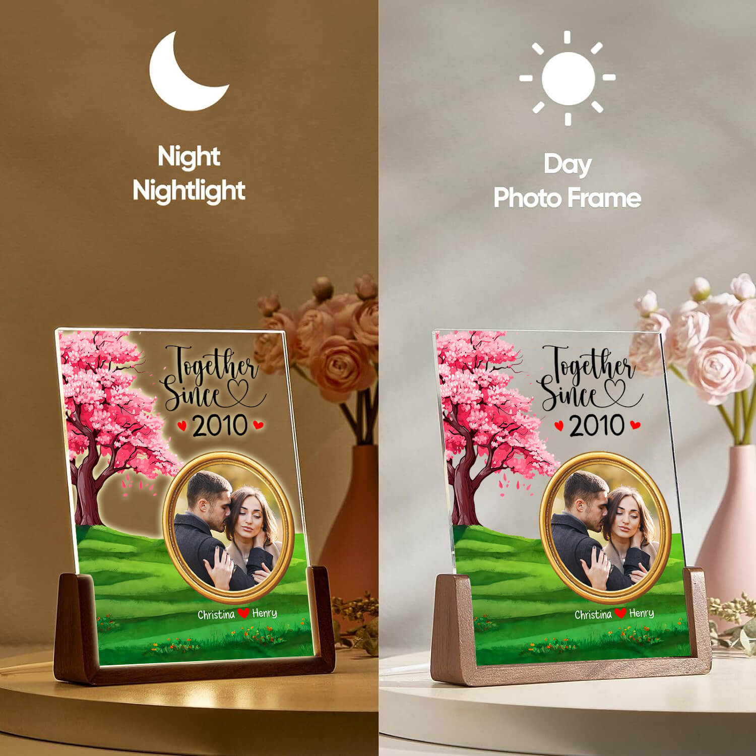 • Versatile Display: Suitable for various locations, from living rooms to offices, ensuring your loved one's photos and name is always in view.