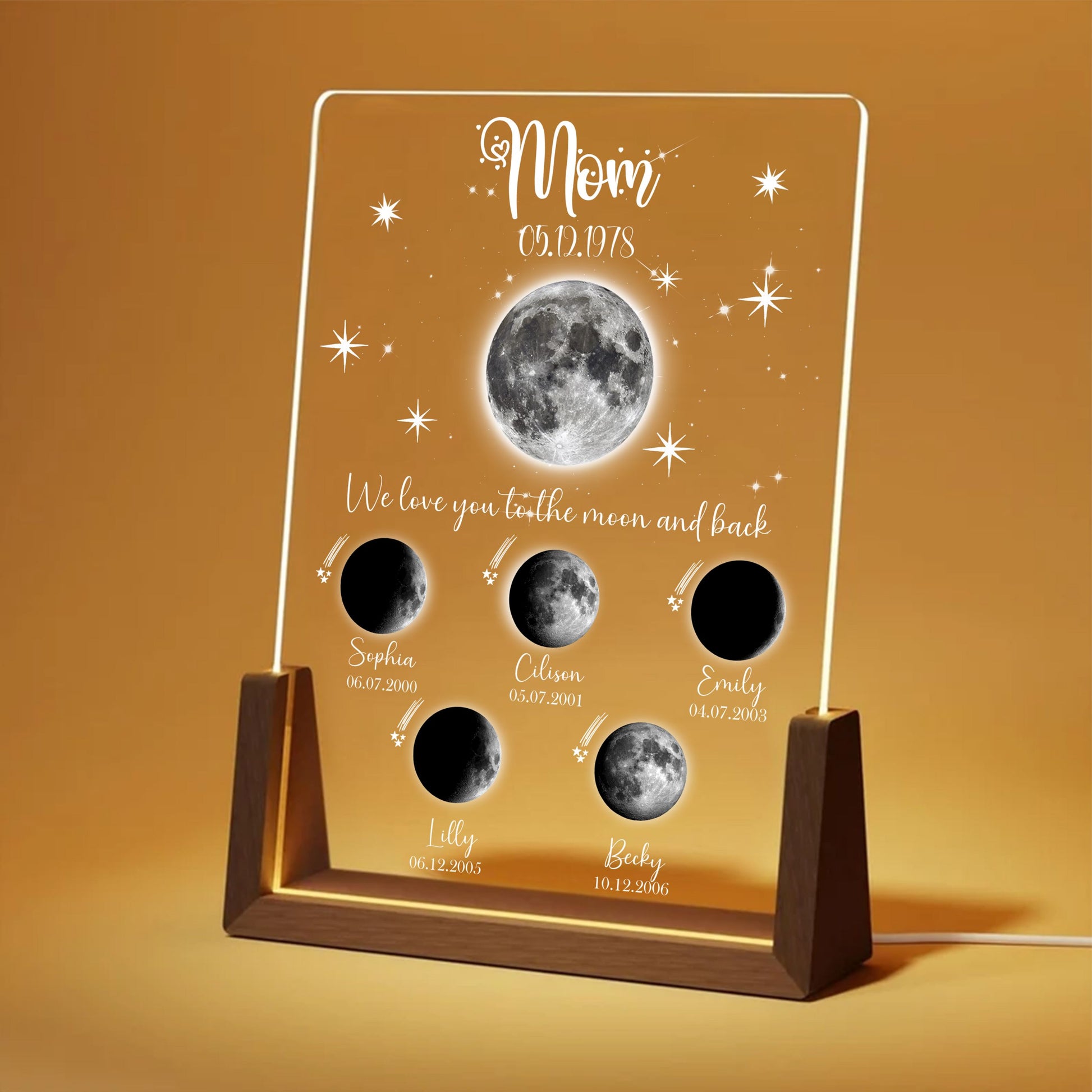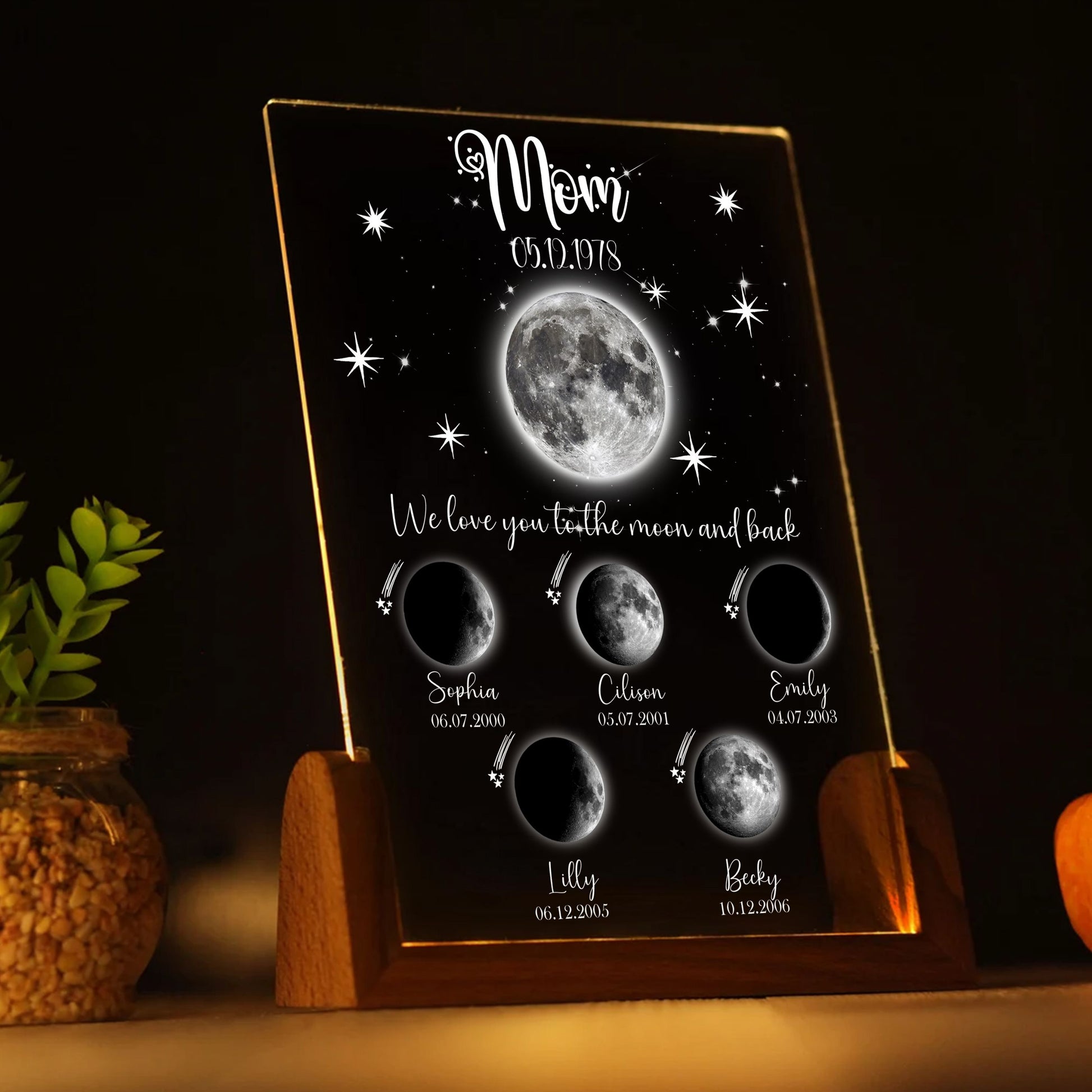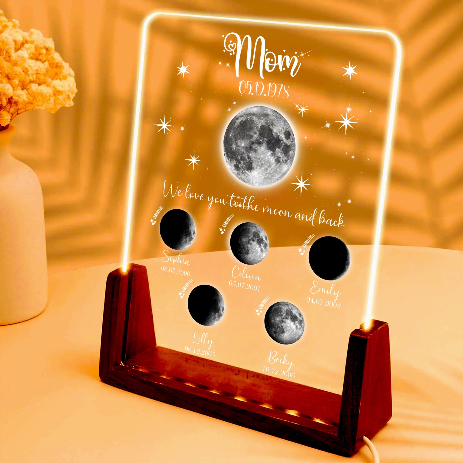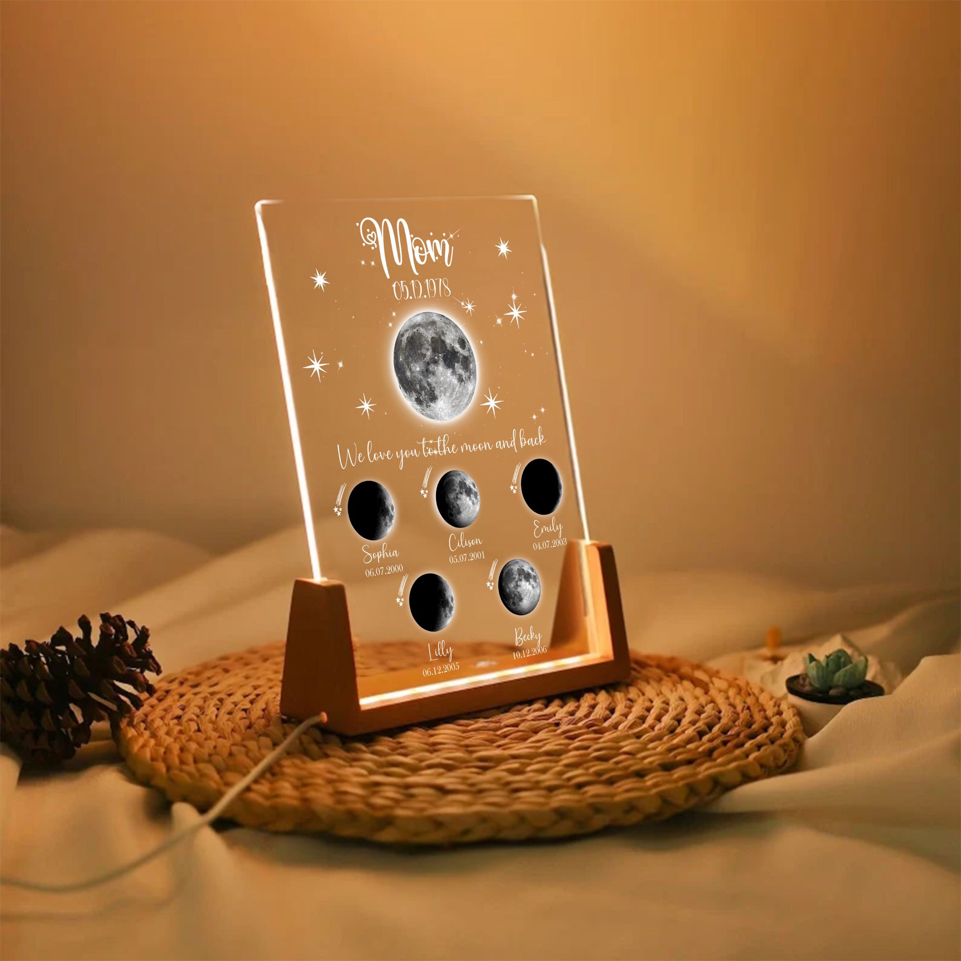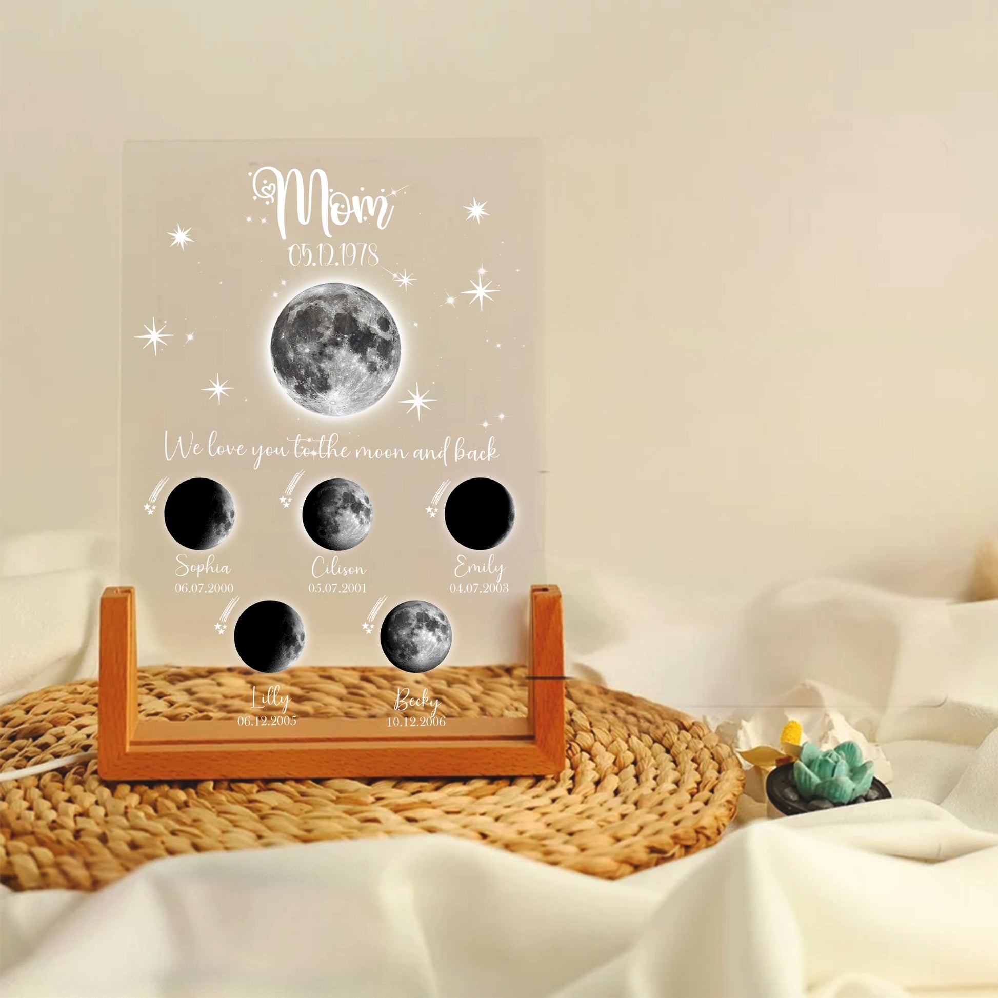 Personalized Moon Phase Mom's Family Acrylic Plaque – A Heartfelt Tribute to Mom