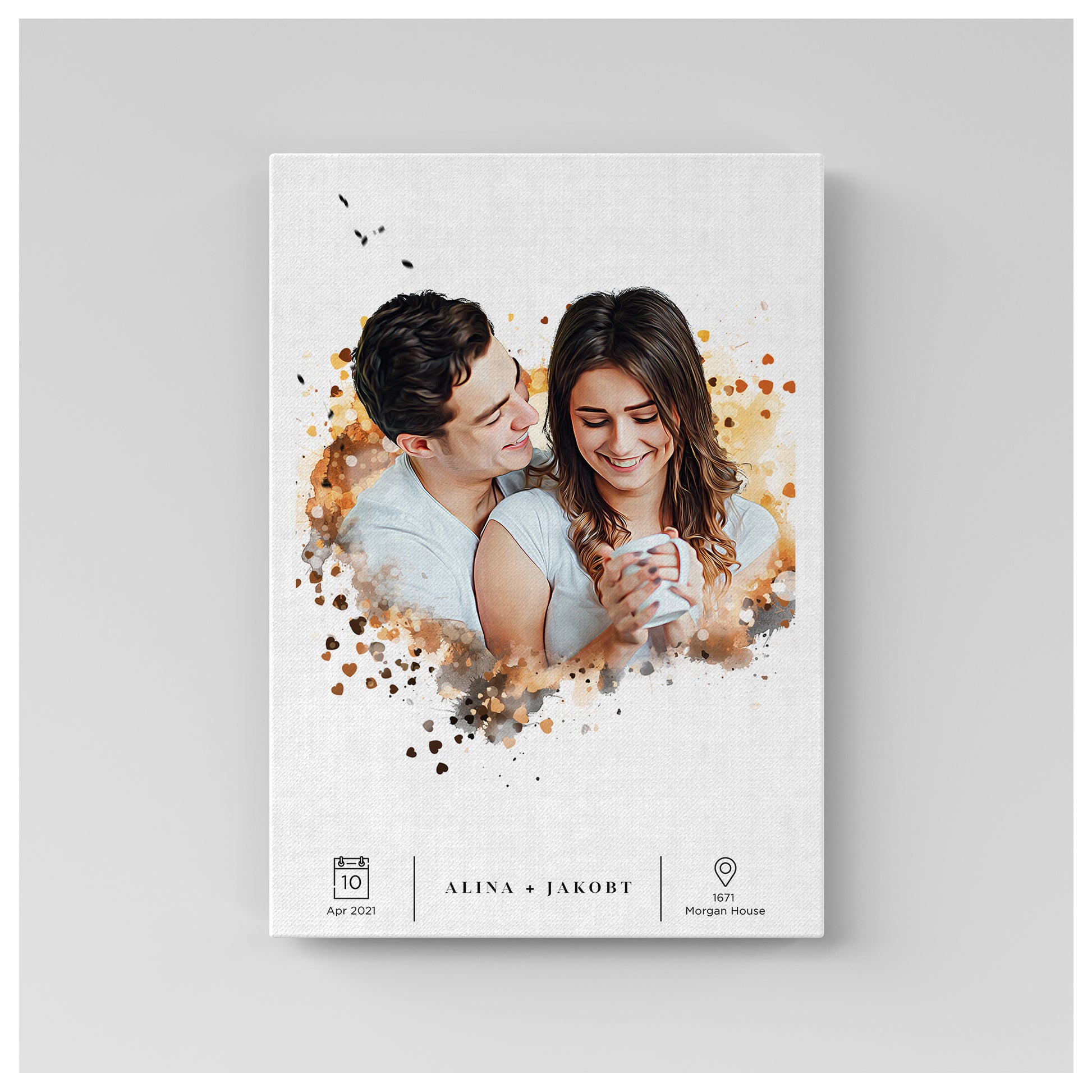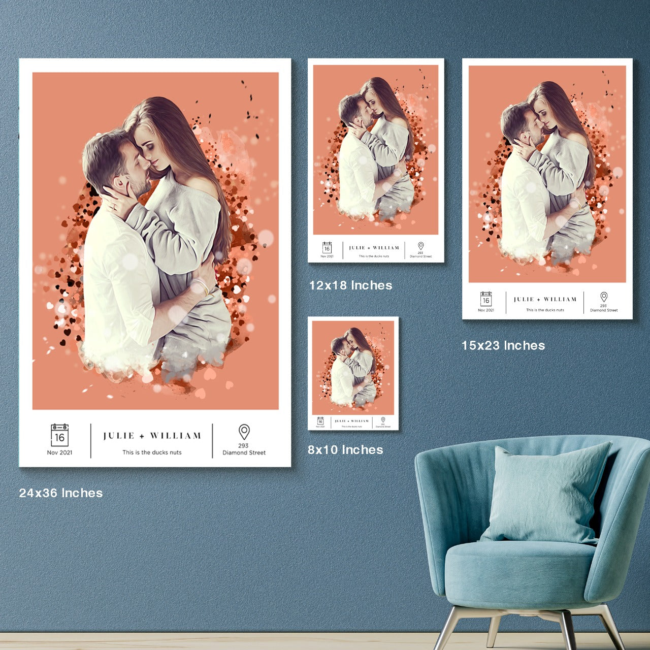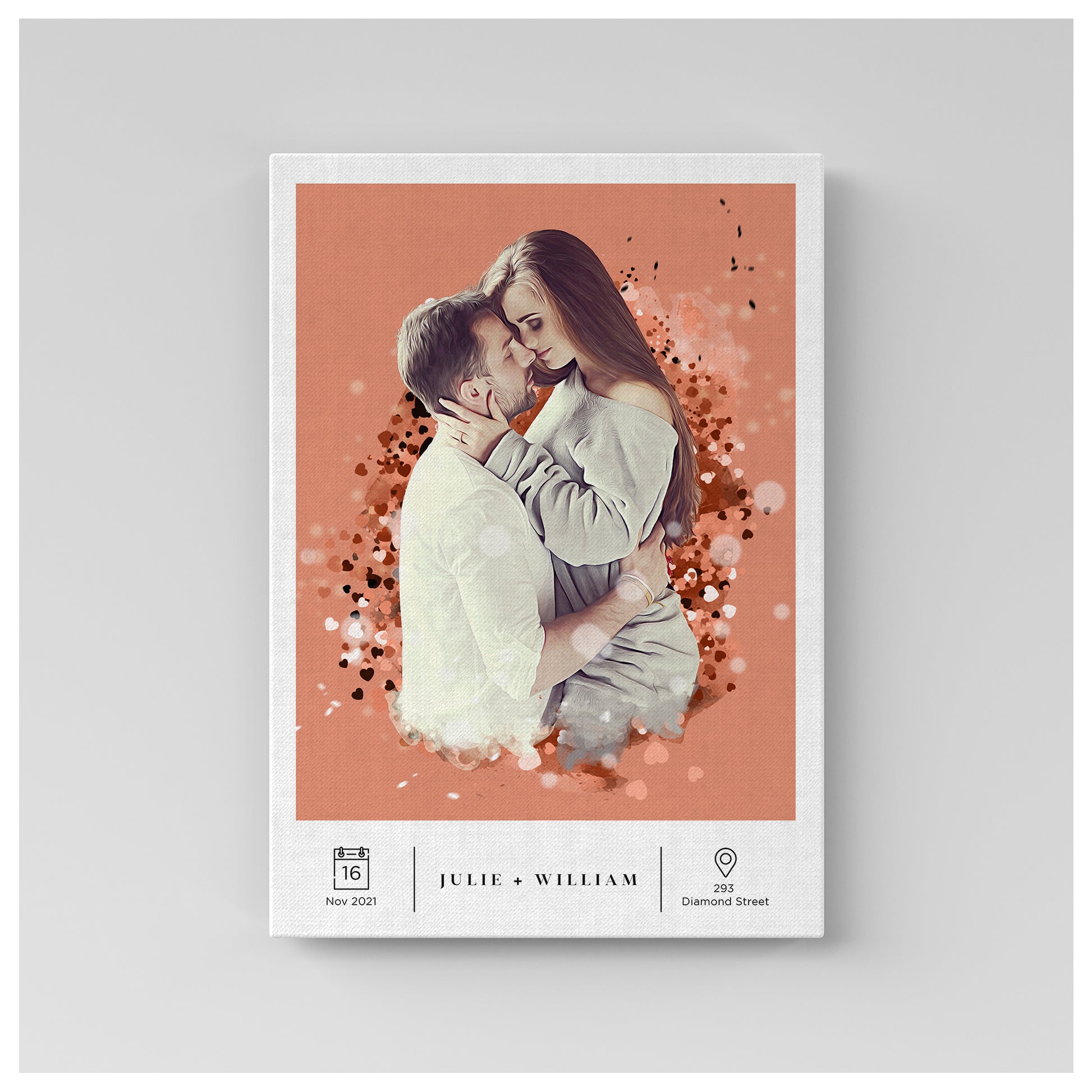 I ordered this custom couple canvas as a Valentine's gift for my wife, and it turned out even better than I could have imagined! It beautifully captured our special moments together, and the look on her face when she saw it was absolutely priceless. The artist truly brought our love story to life on canvas. If you want to surprise your wife with a heartfelt and meaningful gift this Valentine's Day, this is it!" — Michael J.