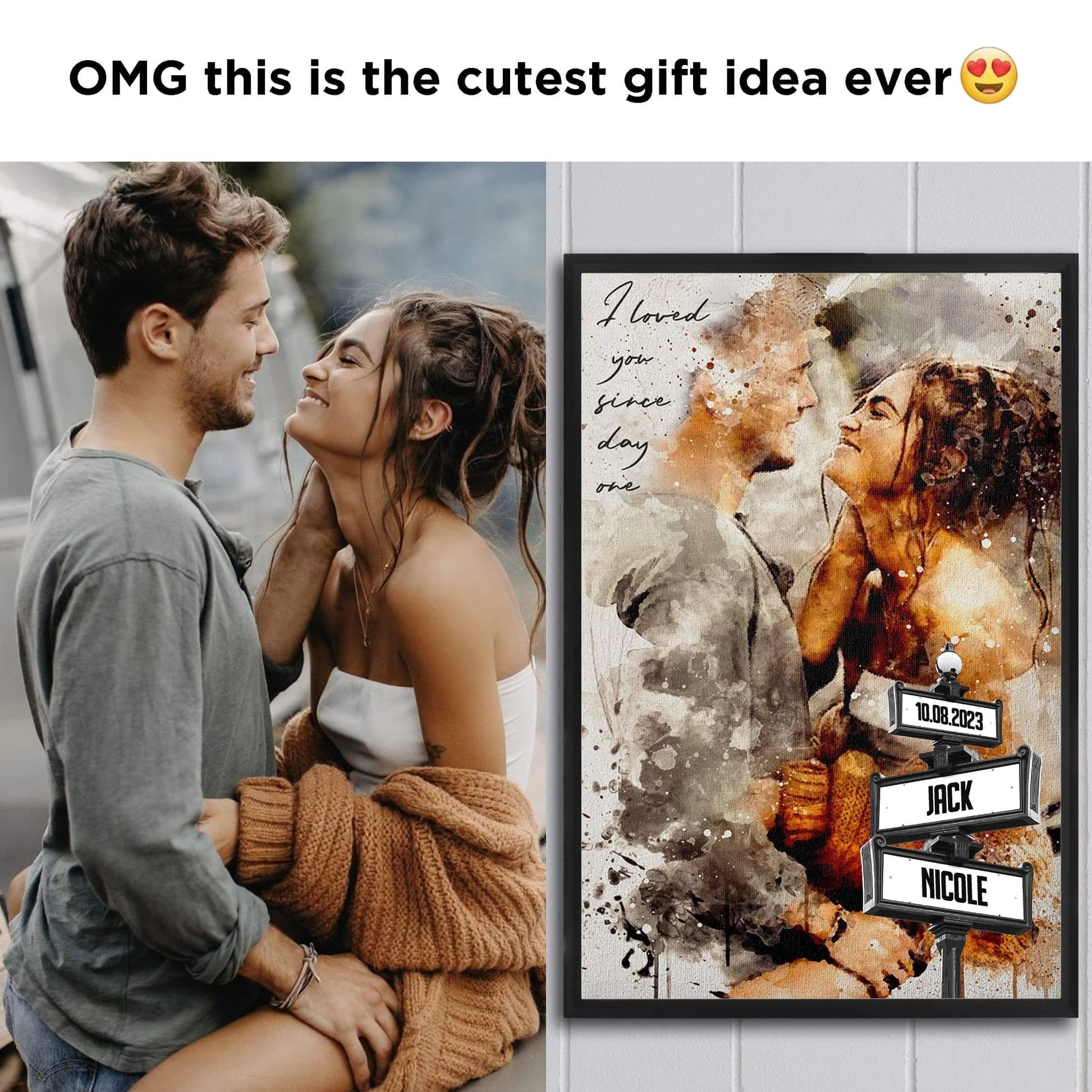I ordered this custom couple canvas as a Valentine's gift for my wife, and it turned out even better than I could have imagined! It beautifully captured our special moments together, and the look on her face when she saw it was absolutely priceless. The artist truly brought our love story to life on canvas. If you want to surprise your wife with a heartfelt and meaningful gift this Valentine's Day, this is it!" — Michael J.