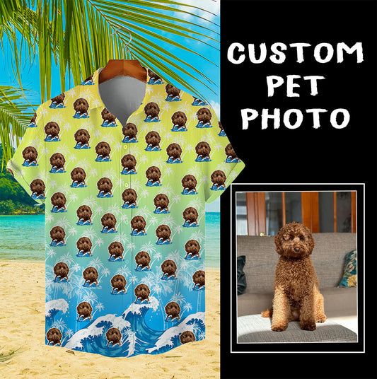 Custom Hawaiian Shirt for Pet Lovers | Personalized Pet Lovers Gift | Surfing Waves & Palm Trees Pattern Ombre Color Aloha Shirt