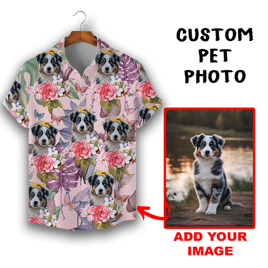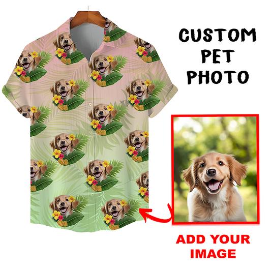Custom Hawaiian Shirt for Pet Lovers | Personalized Pet Lovers Gift | Pineapples & Hibiscus Pattern Pastel Color Aloha Shirt