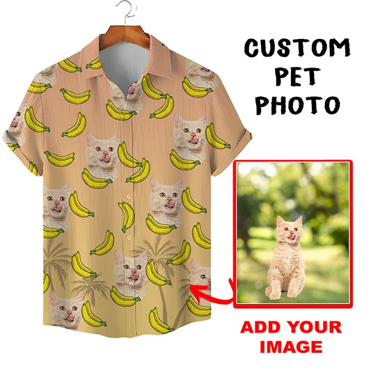 Custom Hawaiian Shirt for Pet Lovers | Personalized Pet Lovers Gift | Bananas & Palm Trees Pattern Beige Color Aloha Shirt