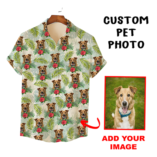 Custom Hawaiian Shirt for Pet Lovers | Personalized Pet Lovers Gift | Tropical Leaves & Flowers Pattern Light Color Aloha Shirt