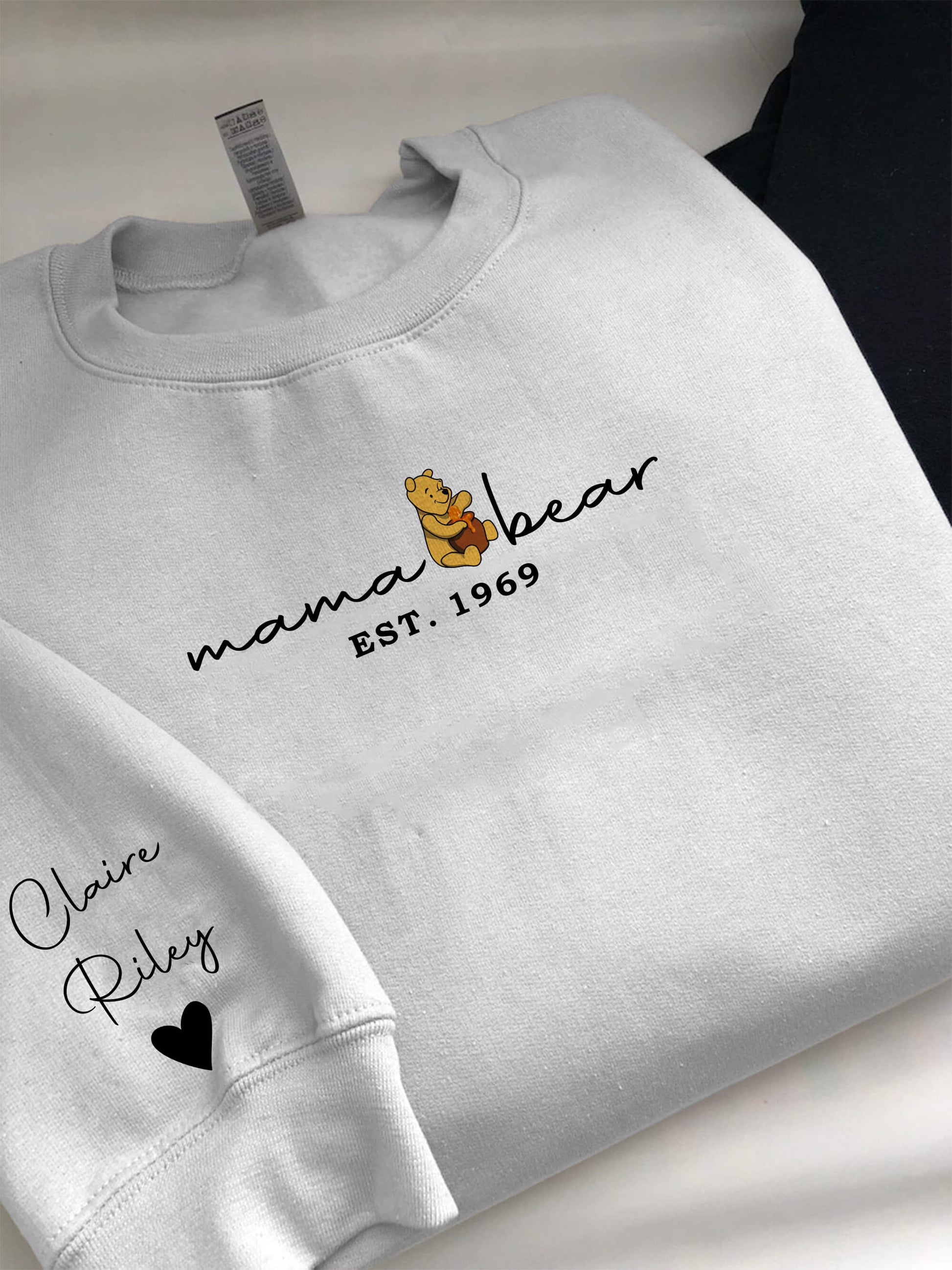 Show your mom how special she is with our Mama Bear Sweatshirt. This custom apparel allows you to add an "established" year and the names of her kids on the sleeves, making it a truly unique and meaningful piece. Perfect for any occasion, this sweatshirt is a loving tribute to the mama bear in your life.