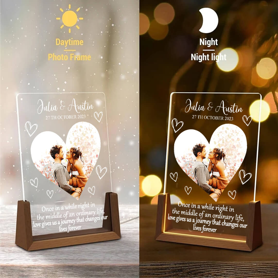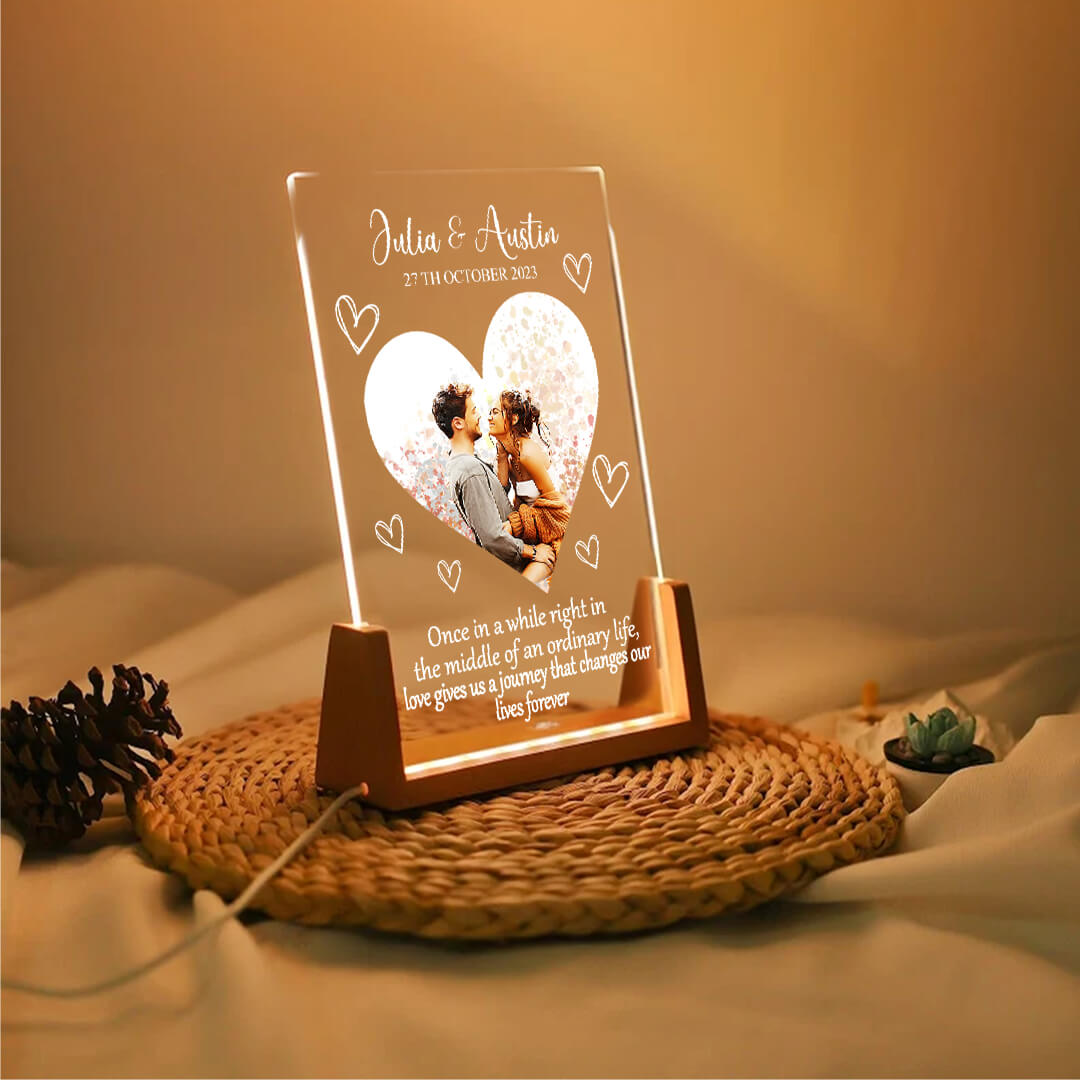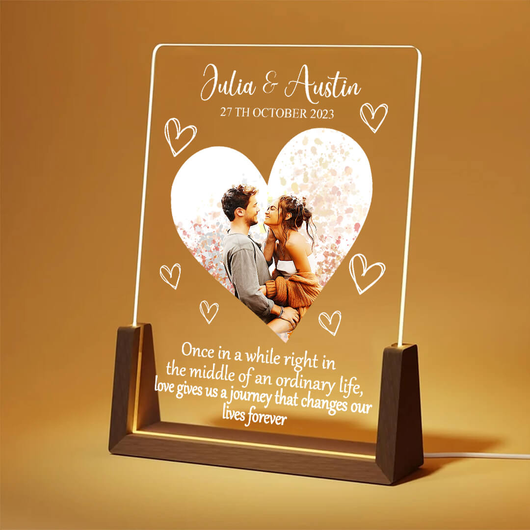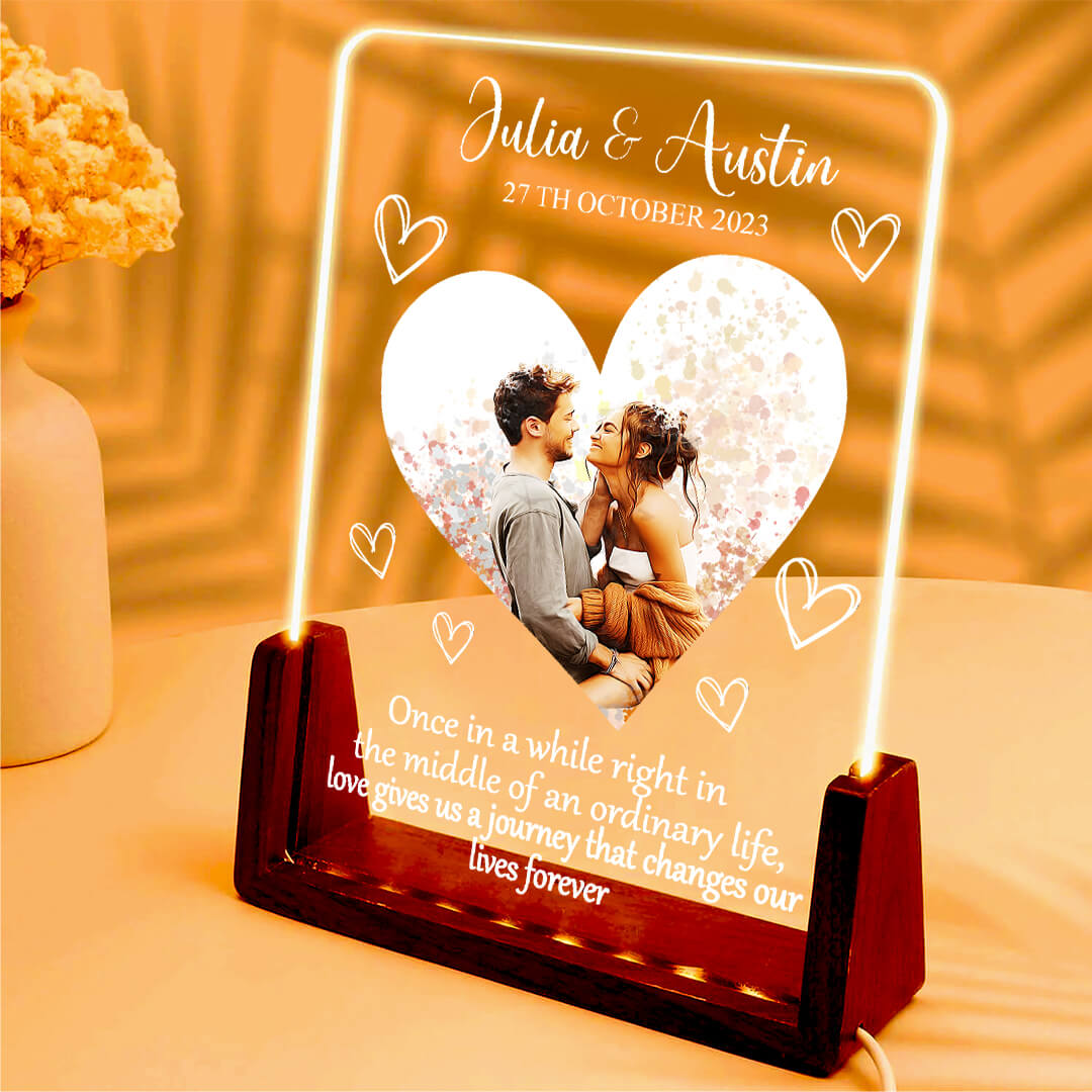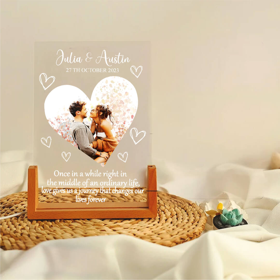 • Custom Names and Photo: Personalize the plaque with your names and a special photo that captures a memorable moment together.
