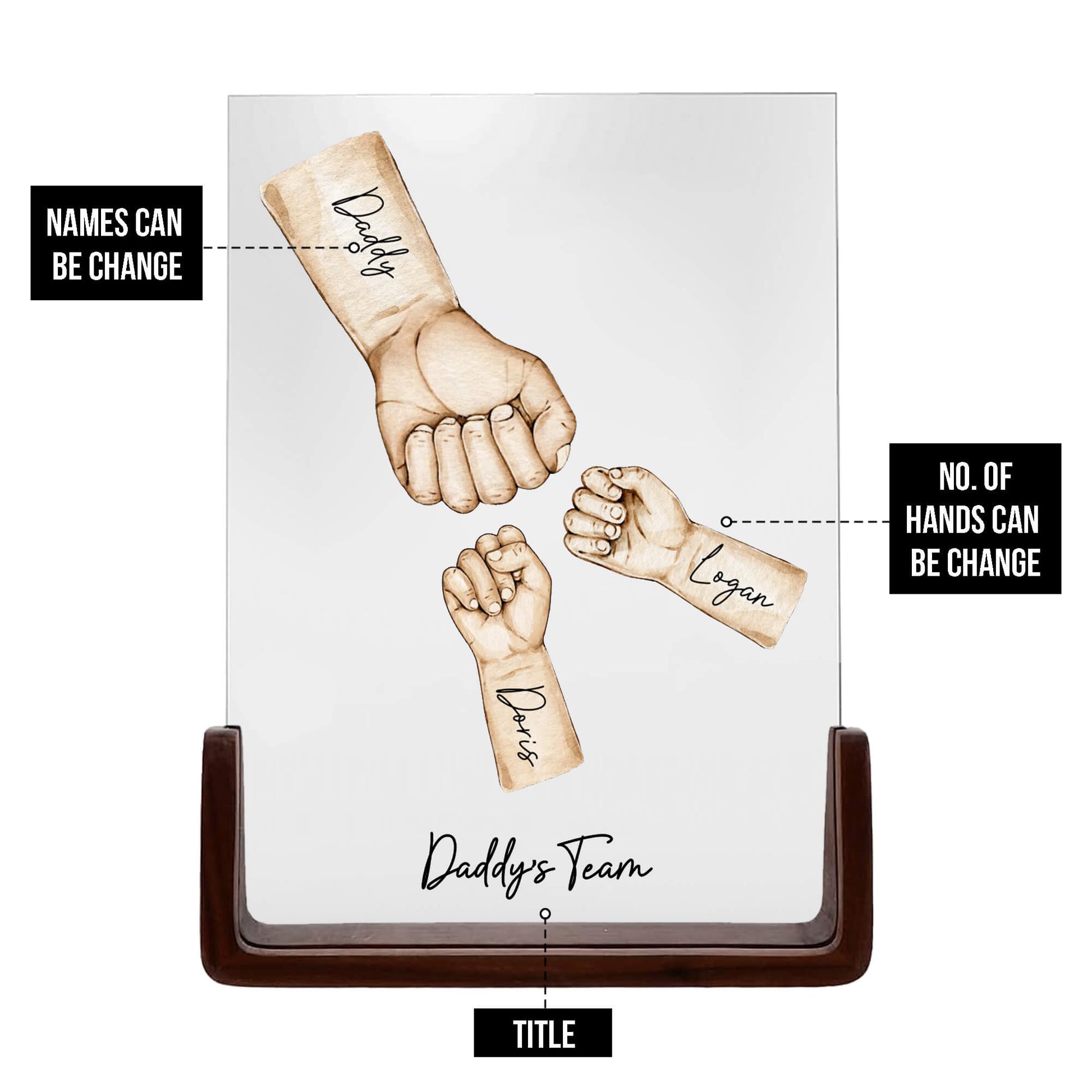 • Personalized Touch: Durable, vibrant, and customizable with your names and number of hands.
