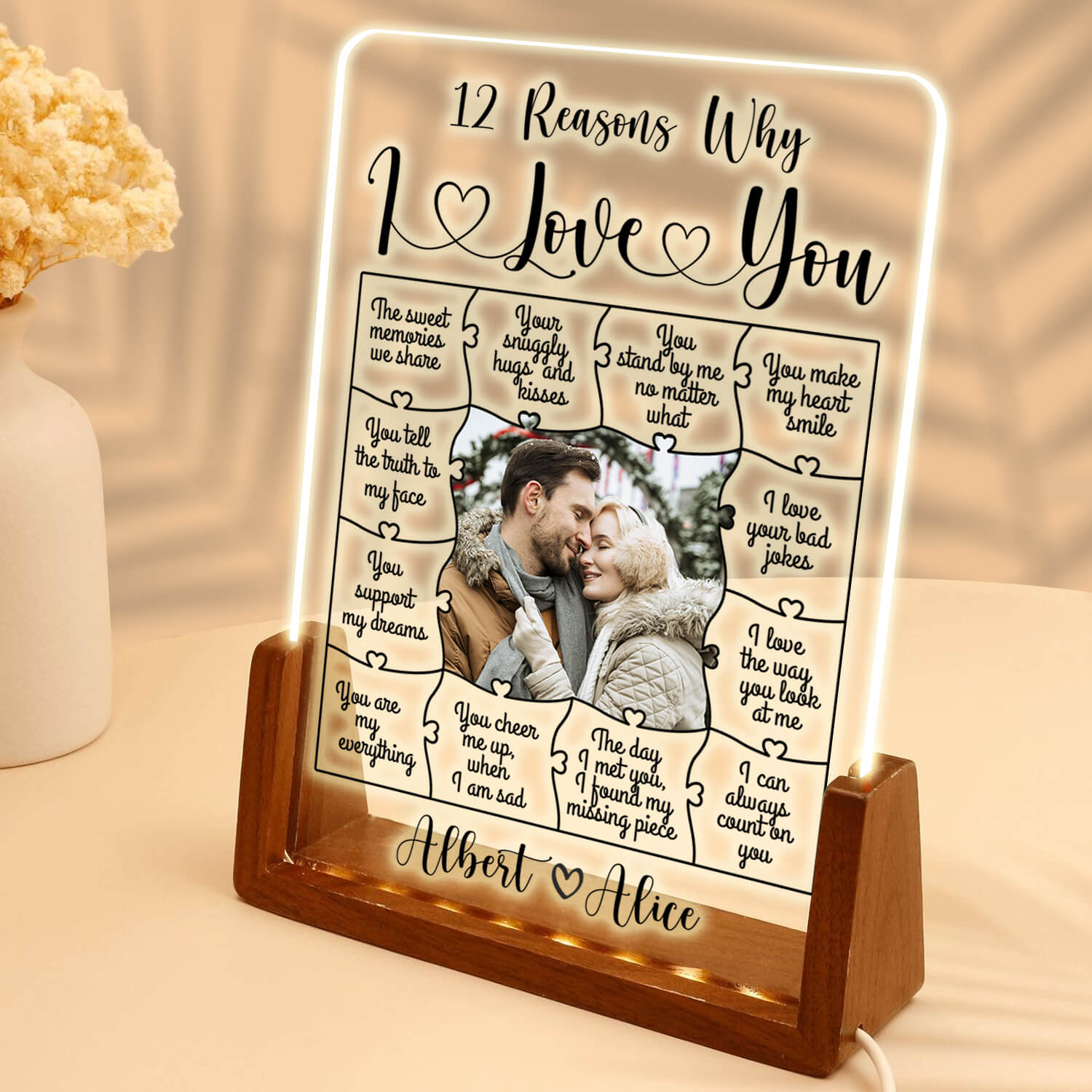 Celebrate love with our Personalize Reasons for Love LED Acrylic Plaque. Each glowing detail exudes happiness, reflecting the quality craftsmanship that went into its creation. Personalize it with your heartfelt reasons for love and bask in the warmth it brings to your space. It's a radiant symbol of joy and enduring quality that will fill your heart with happiness every time you see it.
