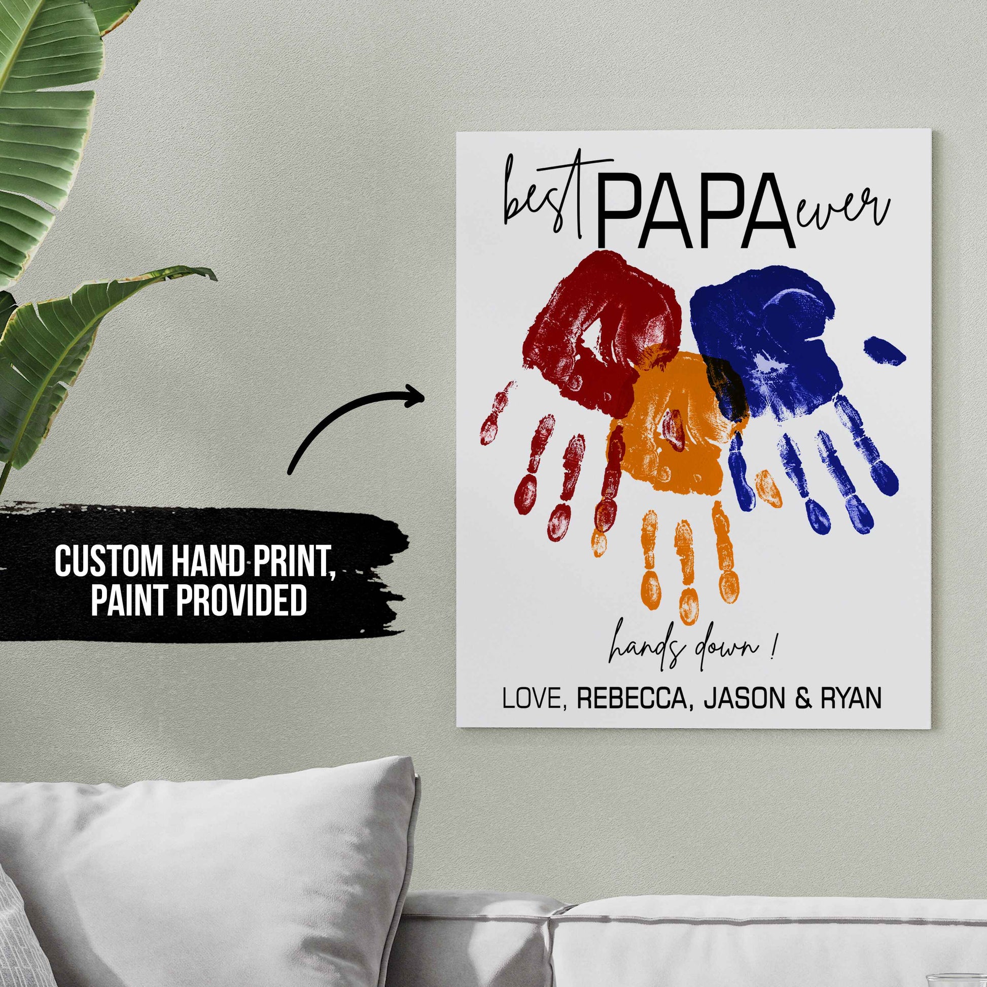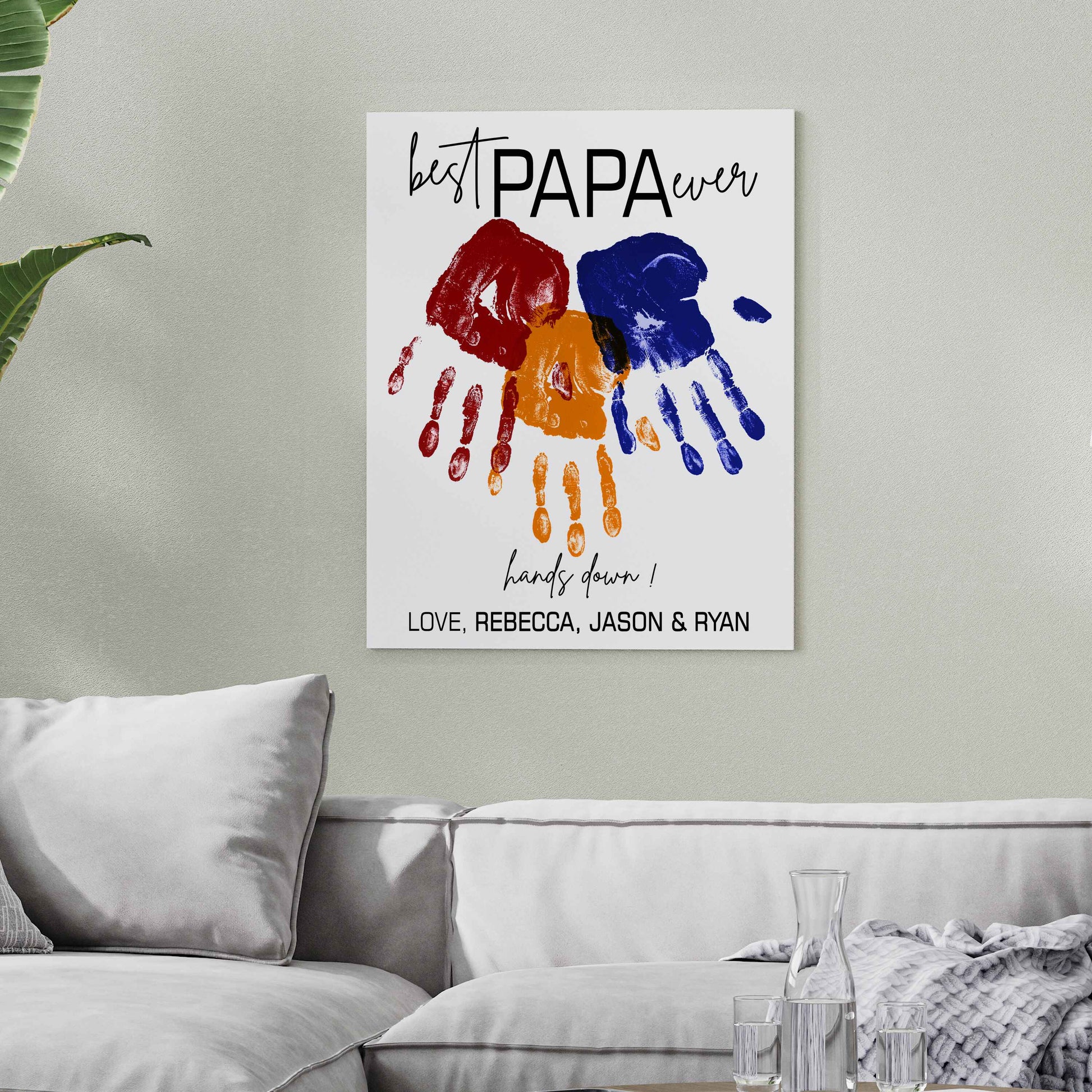 • Custom Handprints and Names: Personalize the canvas with the handprints and names of the kids, making it uniquely special for your dad.