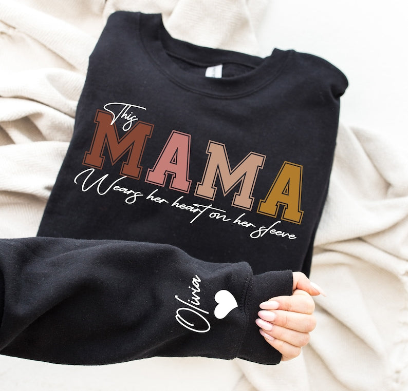 This MAMA Wears Her Heart on Her Sleeve Sweatshirt – Personalized and Heartfelt