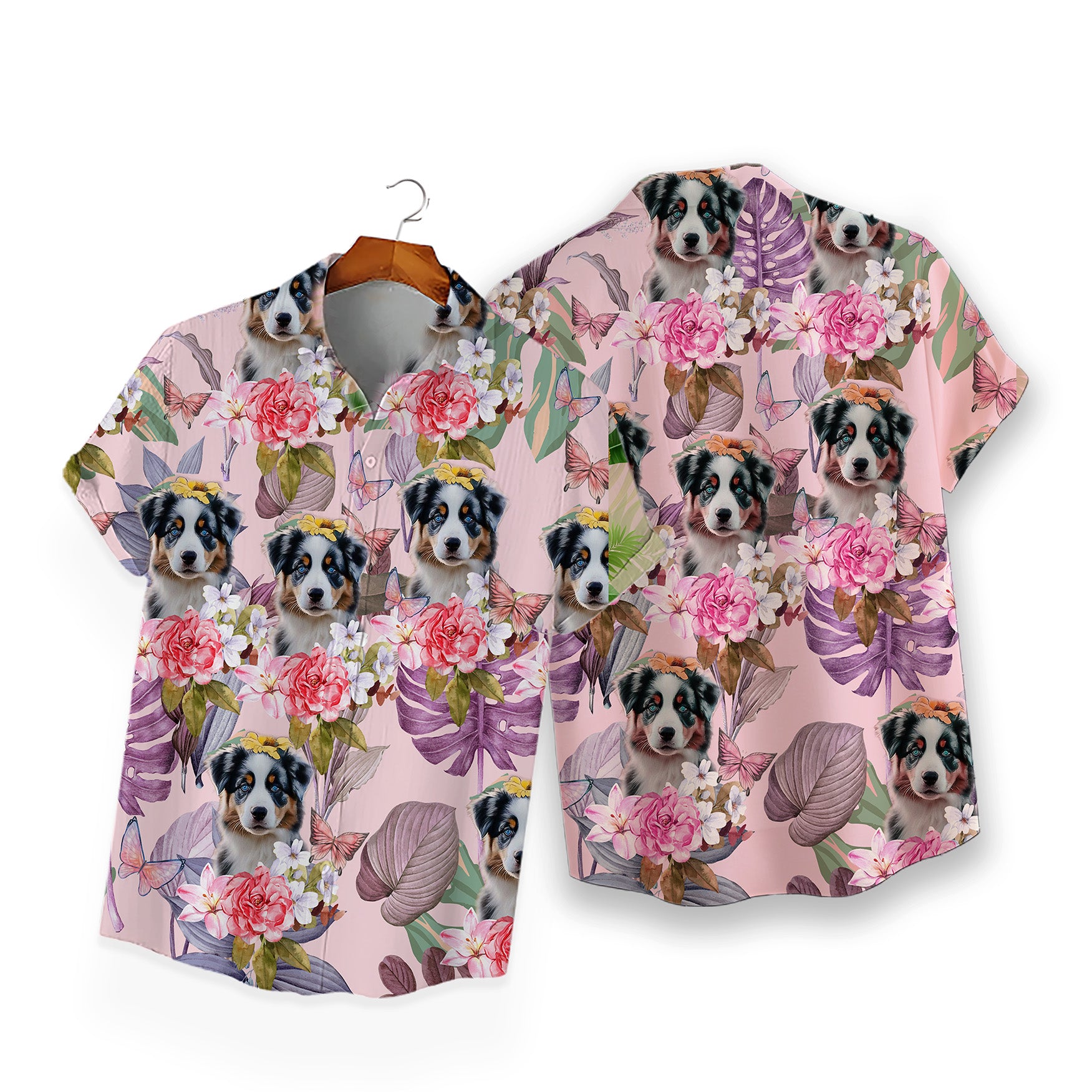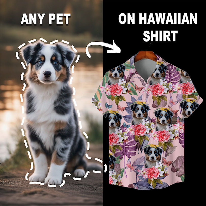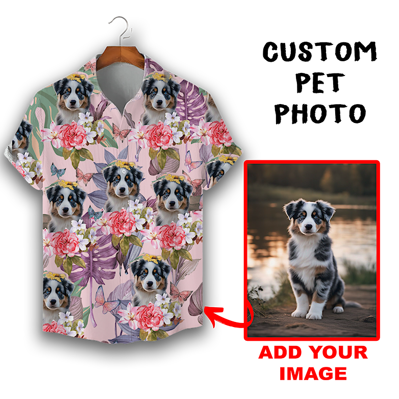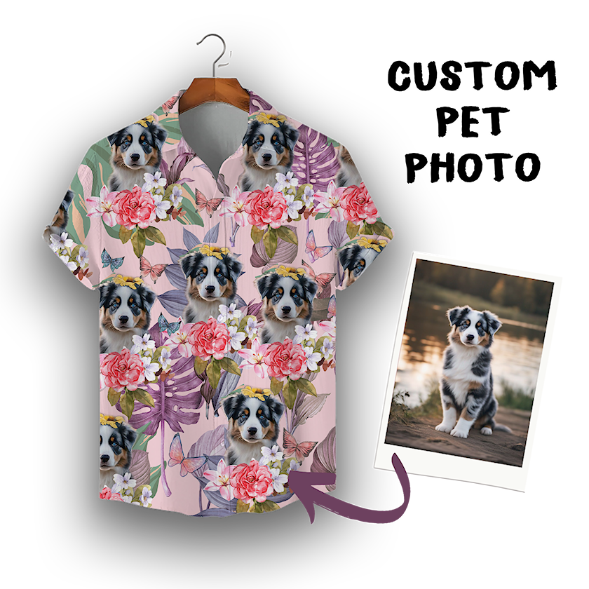 Custom Hawaiian Shirt for Pet Lovers | Personalized Pet Lovers Gift | Floral & Tropical Leaves Pattern Pink Color Aloha Shirt