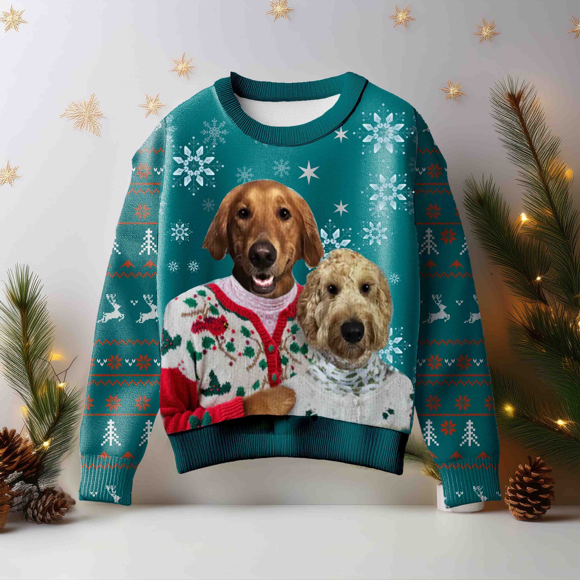 • Personalized Images: Add your photo and your pet’s photo to be displayed prominently on the sweater.