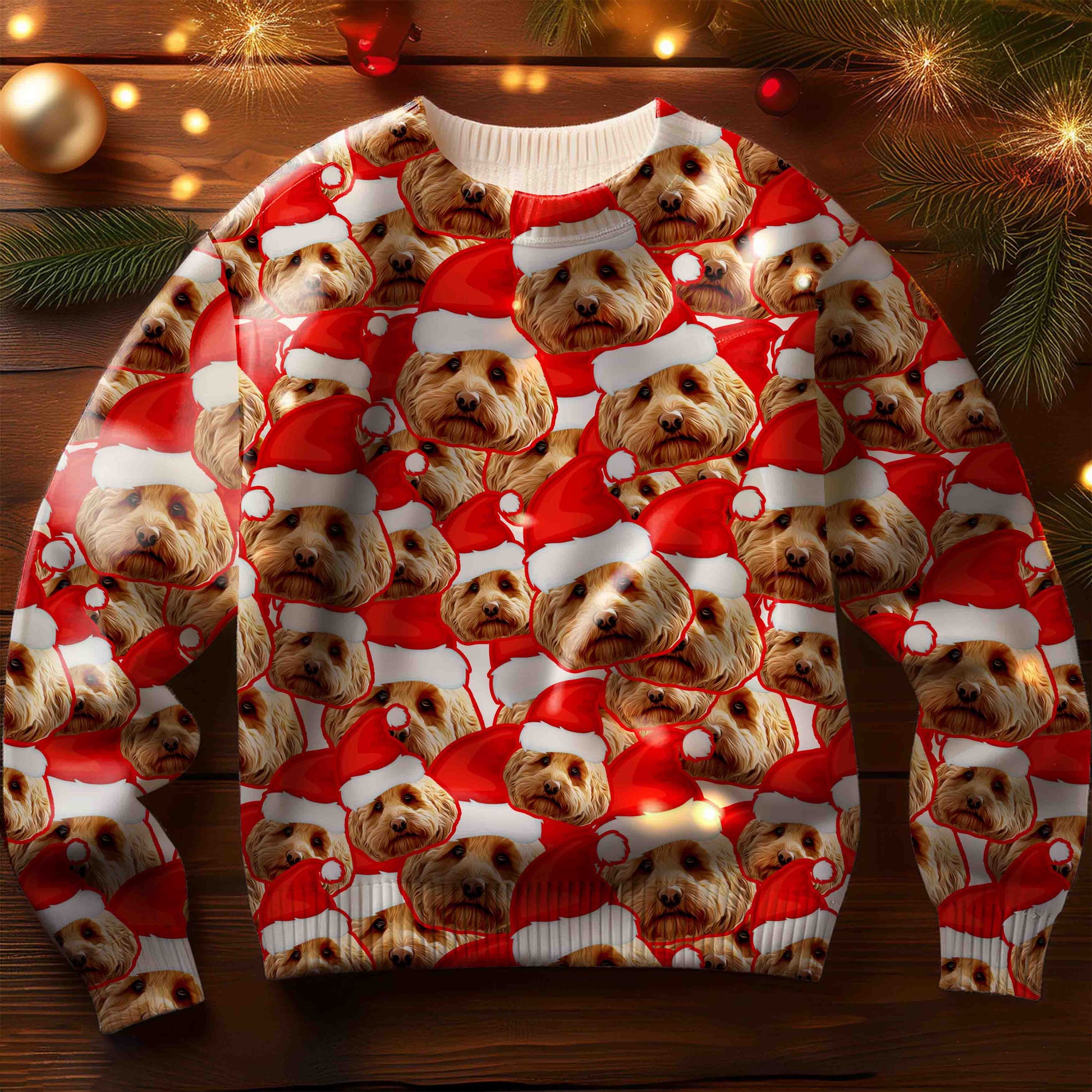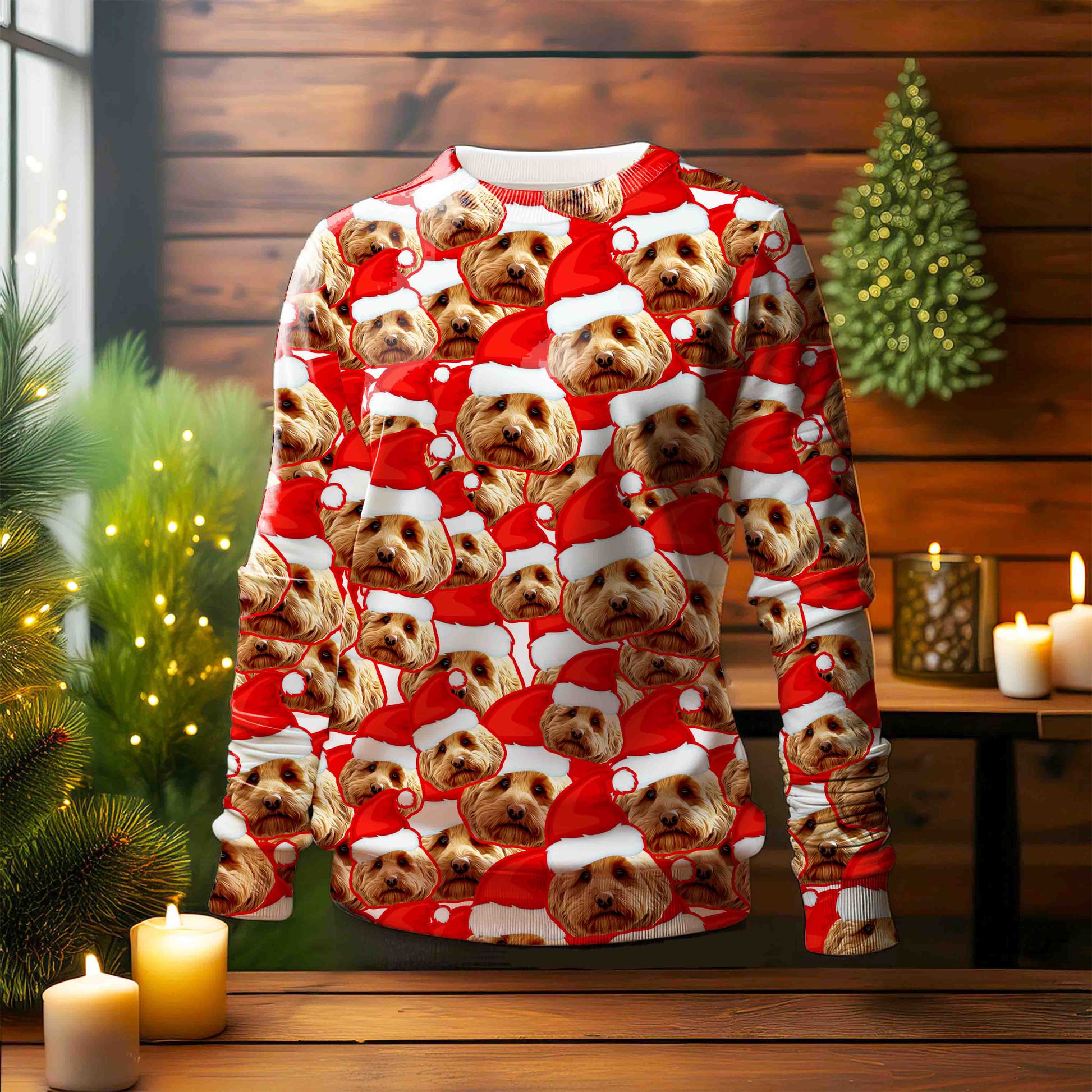 Get into the holiday spirit with our Festive Fur & Santa Hat Custom Ugly Sweater! This festive sweater is personalized with your pet's photo and a fun Santa hat design, making it the perfect choice for holiday celebrations.